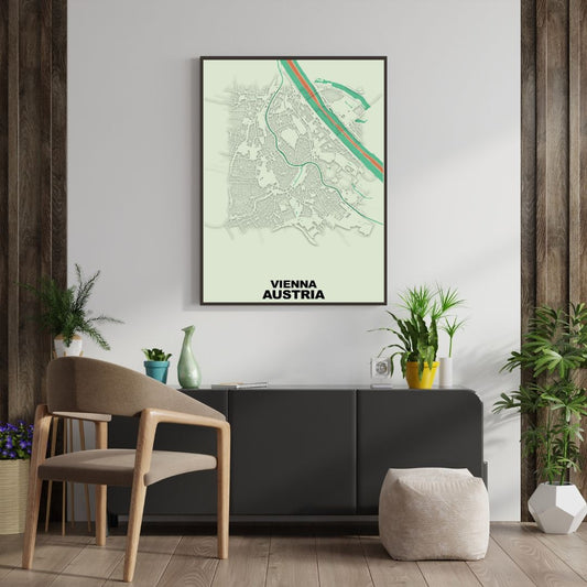 COLOURED ROAD MAP VIENNA, AUSTRIA BY MAPBAKES