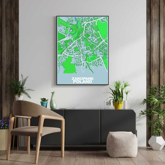 COLOURED ROAD MAP OF ZAKOPANE, POLAND BY MAPBAKES