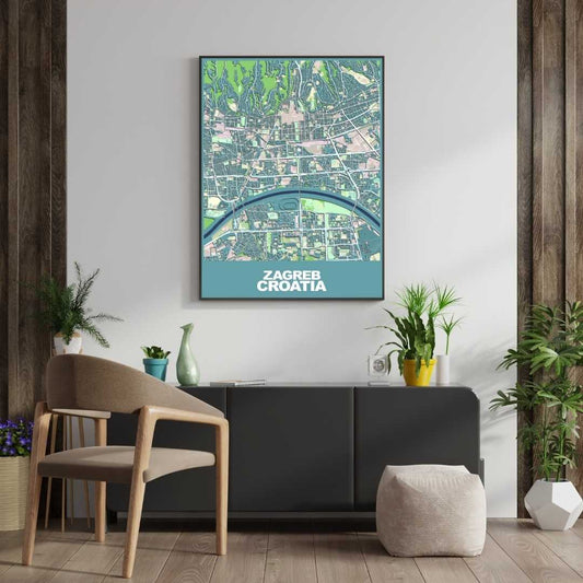 COLOURED ROAD MAP OF ZAGREB, CROATIA BY MAPBAKES