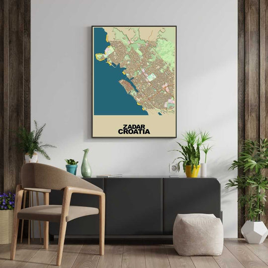 COLOURED ROAD MAP OF ZADAR, CROATIA BY MAPBAKES