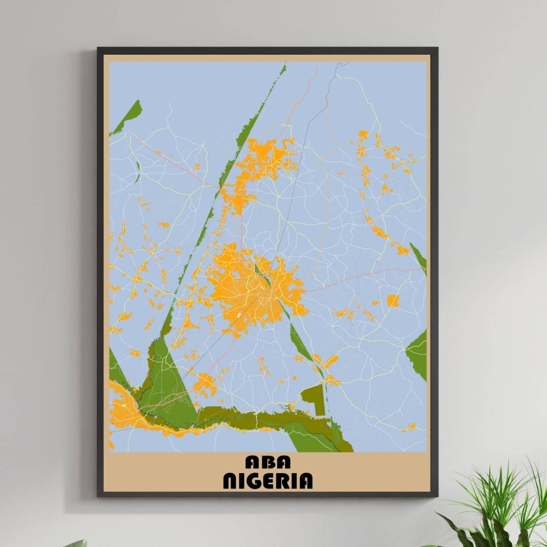 Enhance your space with the beauty of COLOURED ROAD MAP OF ABA, NIGERIA BY MAPBAKES, capturing both aesthetics and practicality in one extraordinary map print.