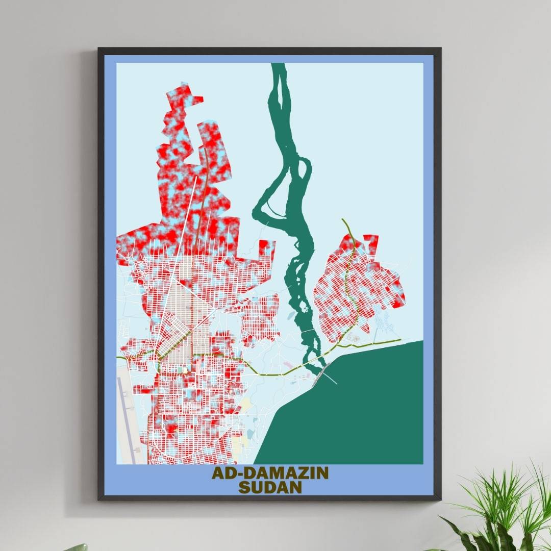 Enhance your space with the beauty of COLOURED ROAD MAP OF AD-DAMAZĪN, SUDAN BY MAPBAKES, capturing both aesthetics and practicality in one extraordinary map print.