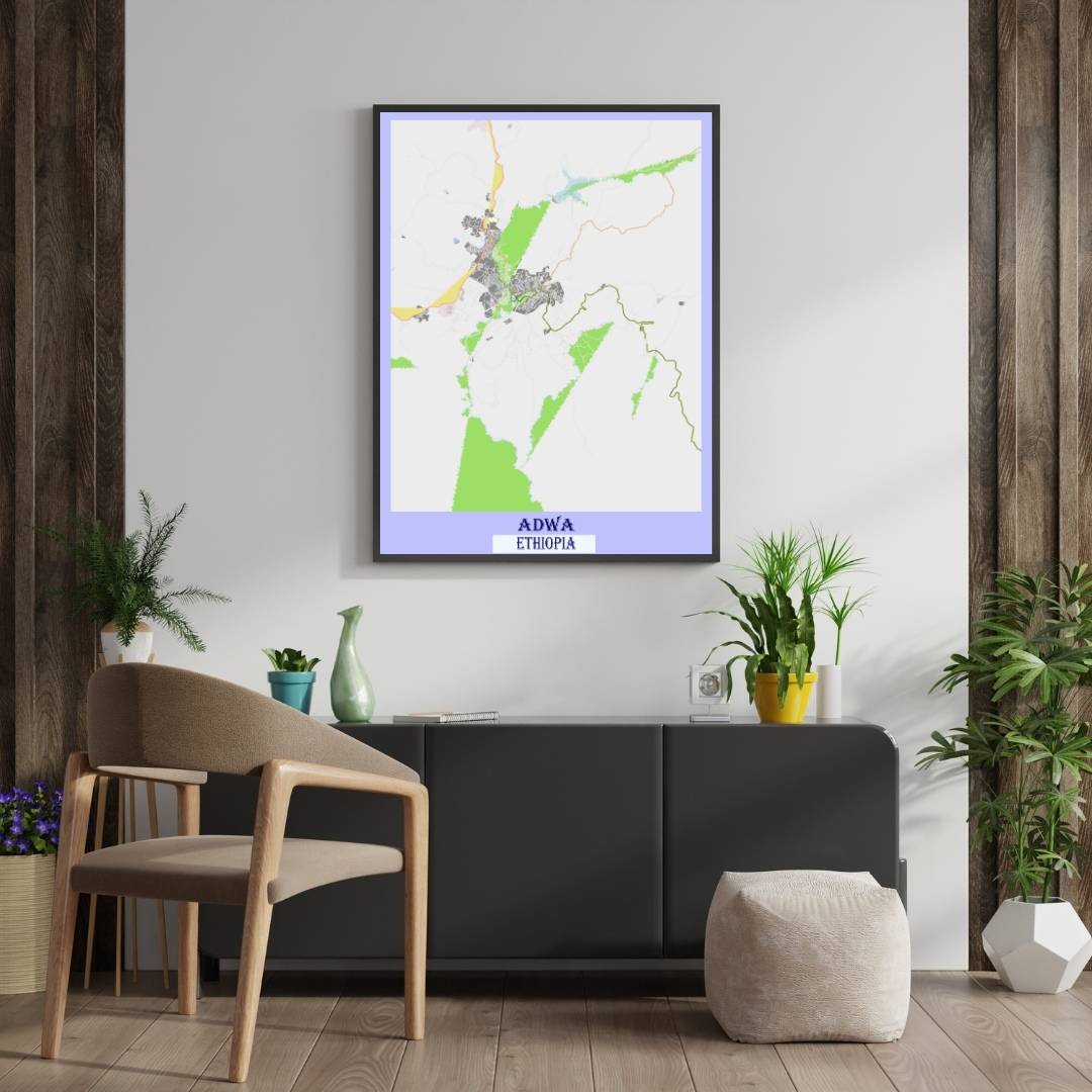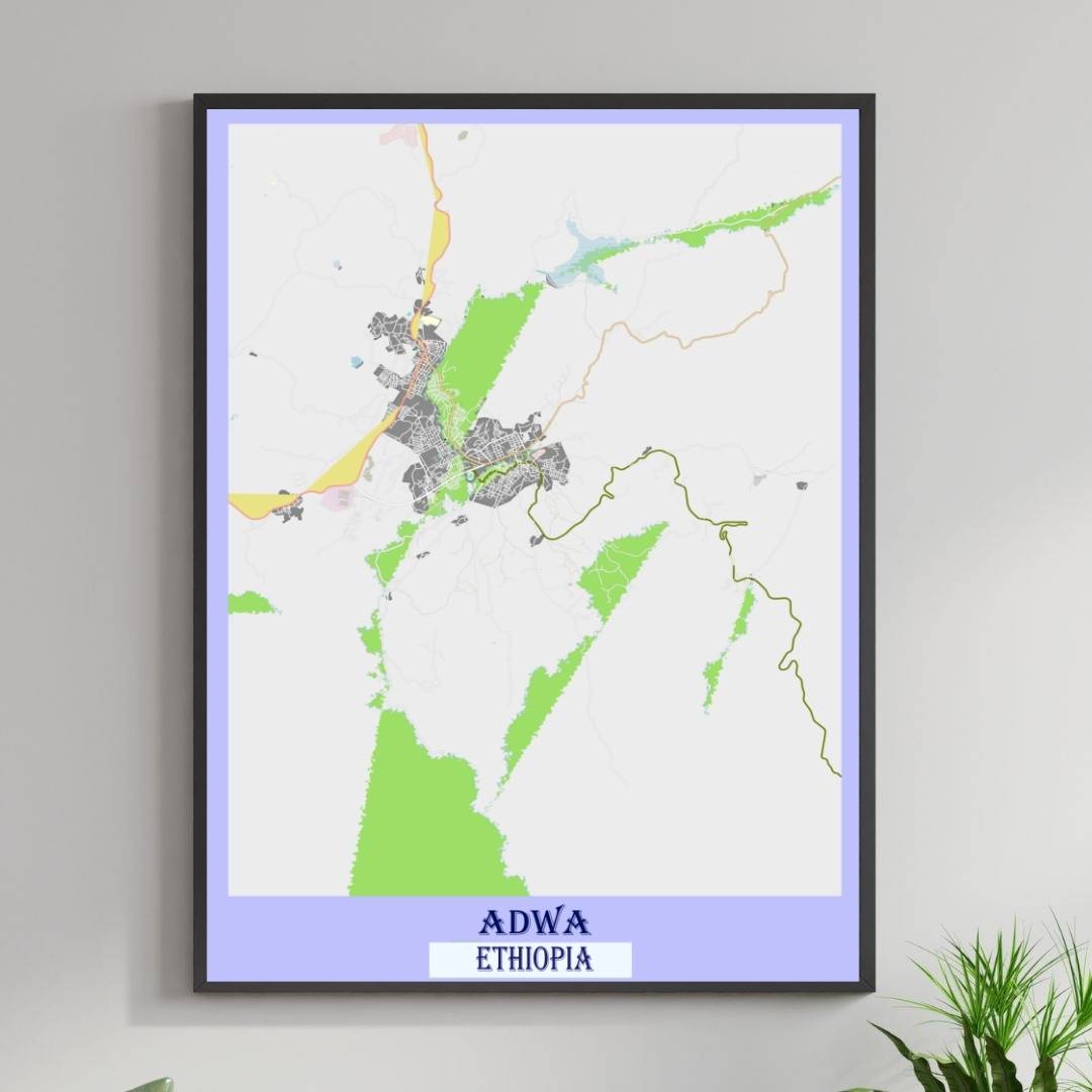 Enhance your space with the beauty of COLOURED ROAD MAP OF ADWA, ETHIOPIA BY MAPBAKES, capturing both aesthetics and practicality in one extraordinary map print.