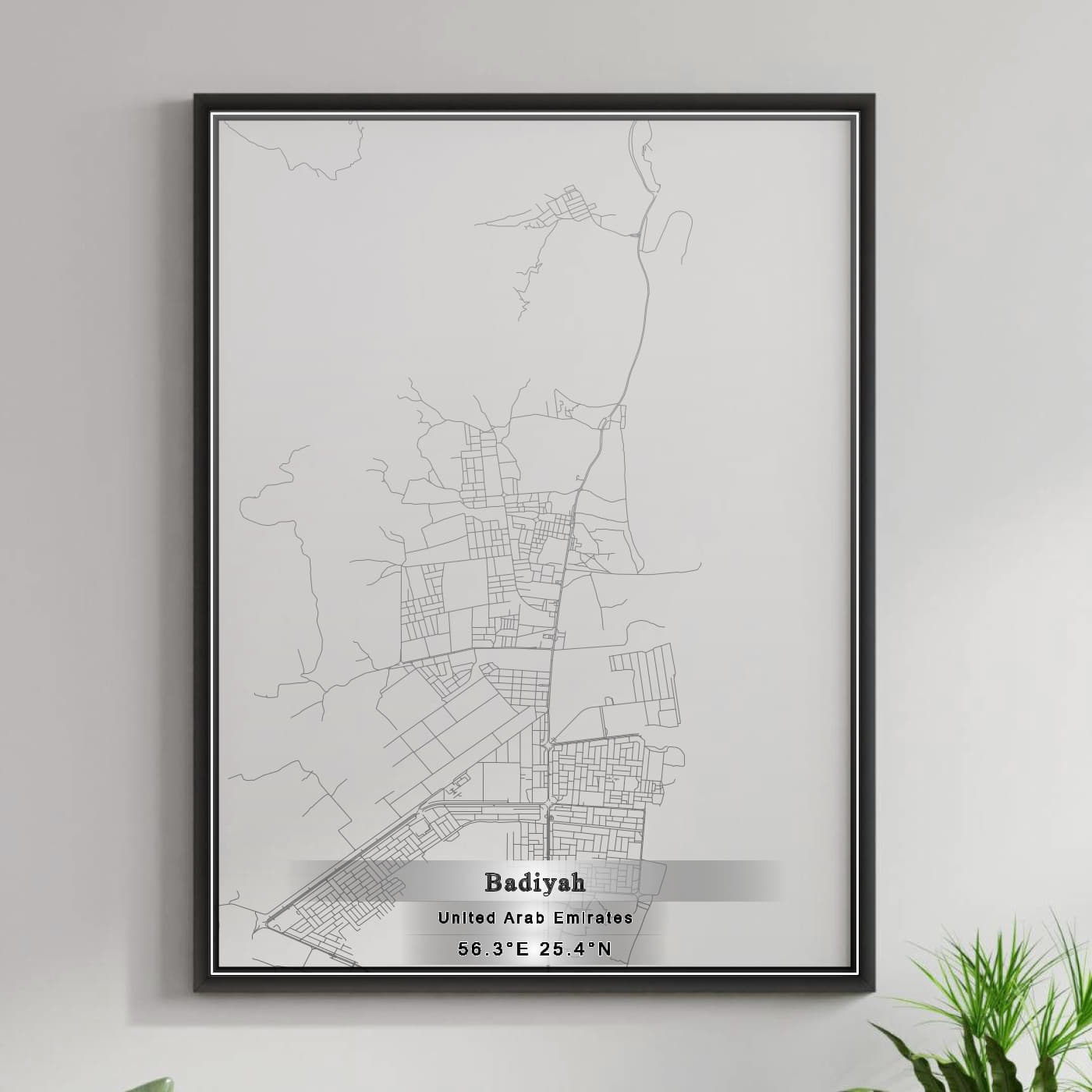 Enhance your space with the beauty of ROAD MAP OF BADĪYAH, UNITED ARAB EMIRATES BY MAPBAKES, capturing both aesthetics and practicality in one extraordinary map print.