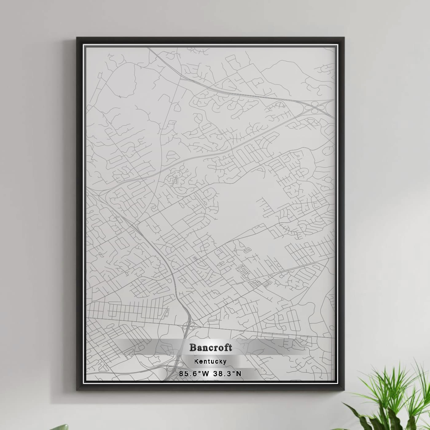 Enhance your space with the beauty of ROAD MAP OF BANCROFT, KENTUCKY BY MAPBAKES, capturing both aesthetics and practicality in one extraordinary map print.
