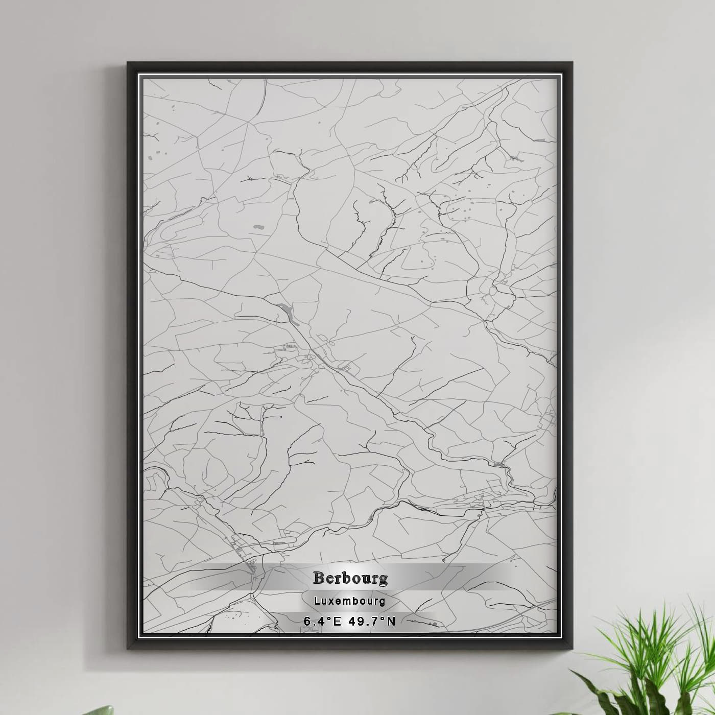 Enhance your space with the beauty of ROAD MAP OF BERBOURG, LUXEMBOURG BY MAPBAKES, capturing both aesthetics and practicality in one extraordinary map print.