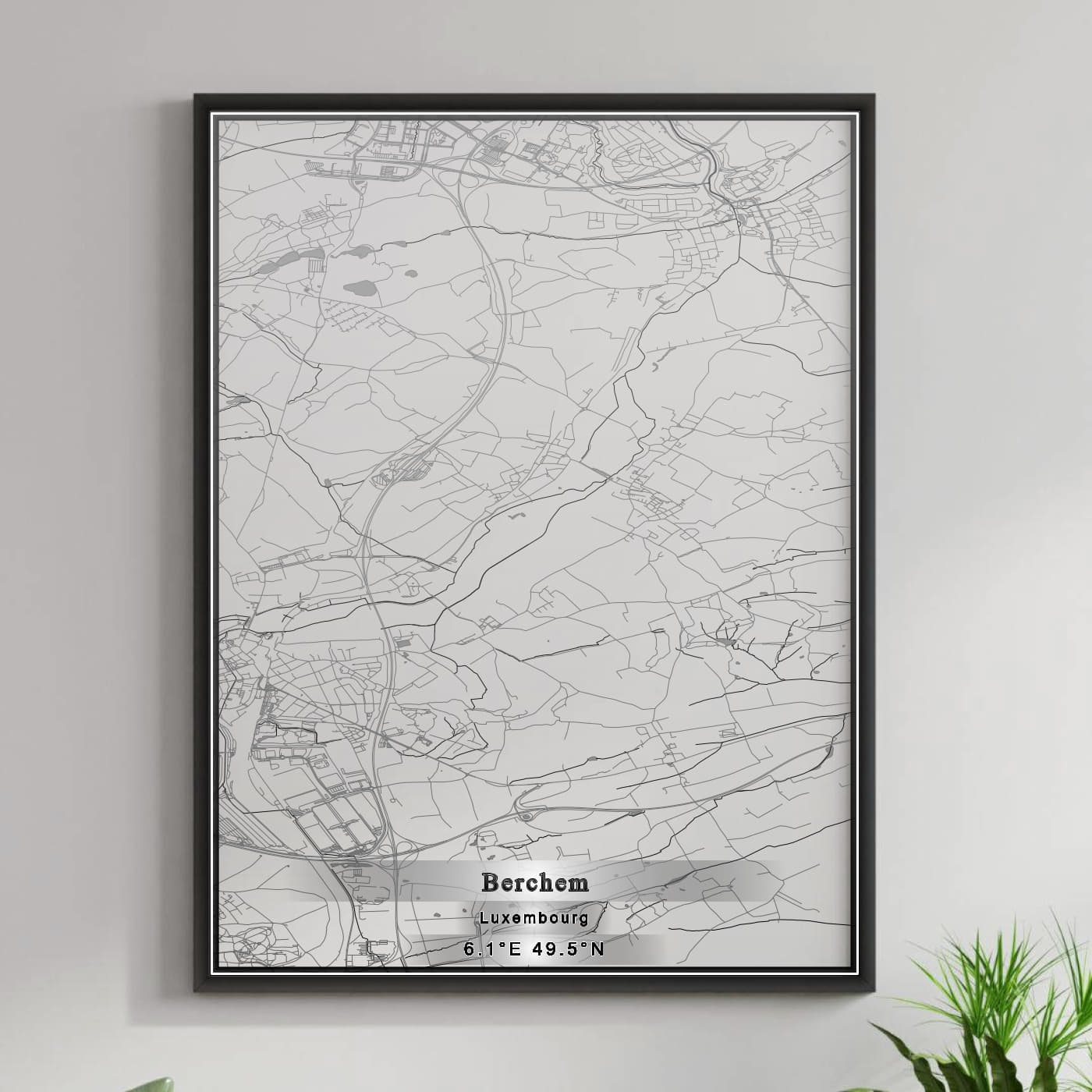 Enhance your space with the beauty of ROAD MAP OF BERCHEM, LUXEMBOURG BY MAPBAKES, capturing both aesthetics and practicality in one extraordinary map print.