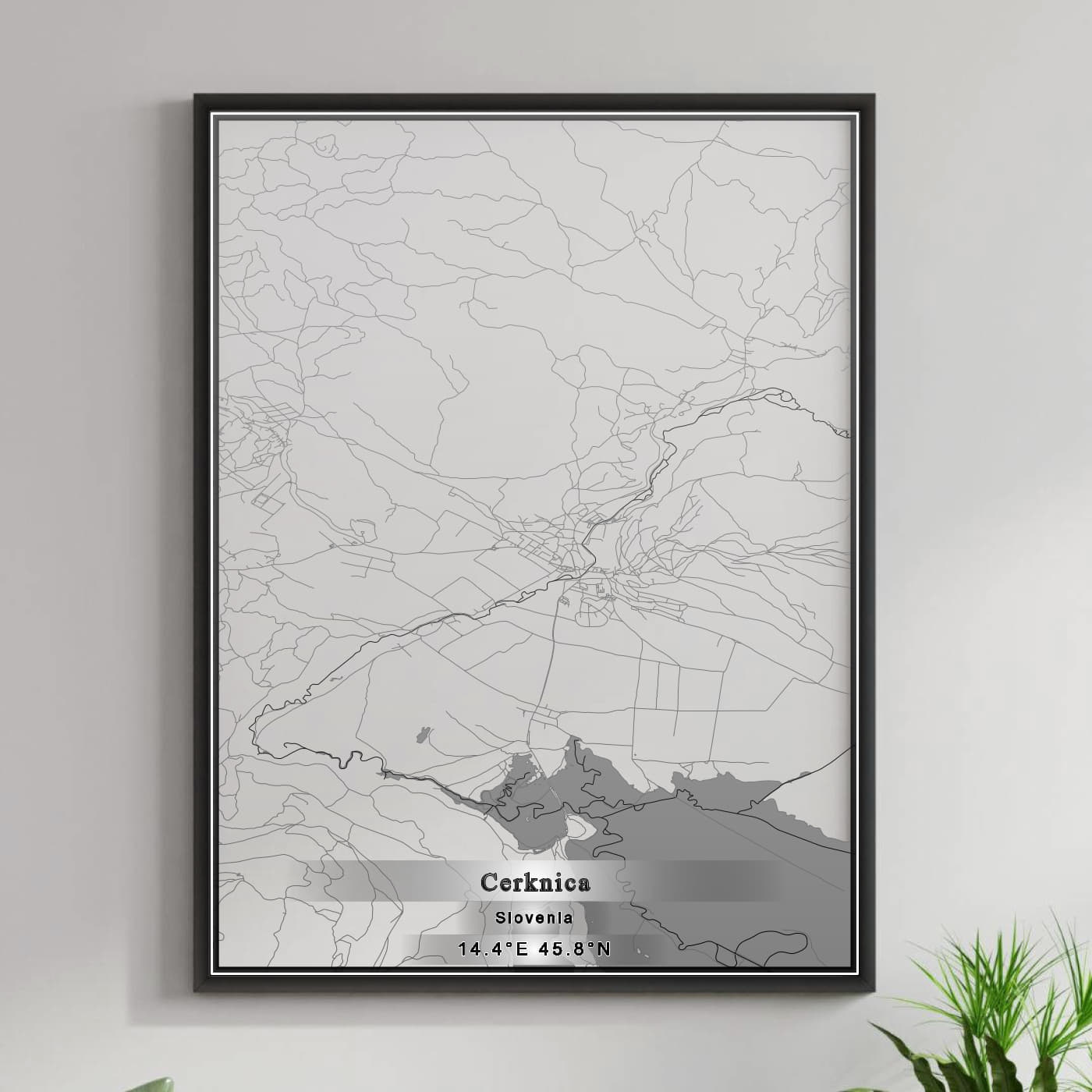 Enhance your space with the beauty of ROAD MAP OF CERKNICA, SLOVENIA BY MAPBAKES, capturing both aesthetics and practicality in one extraordinary map print.