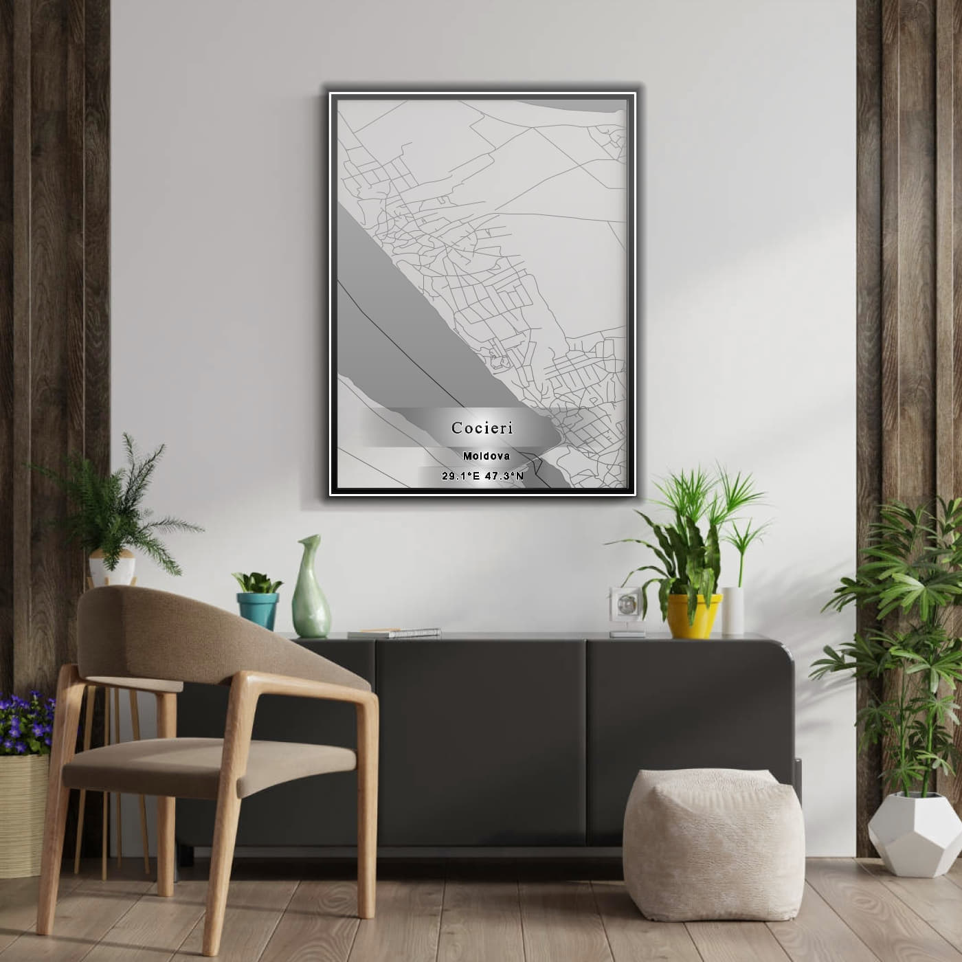 Enhance your space with the beauty of ROAD MAP OF COCIERI, MOLDOVA BY MAPBAKES, capturing both aesthetics and practicality in one extraordinary map print.