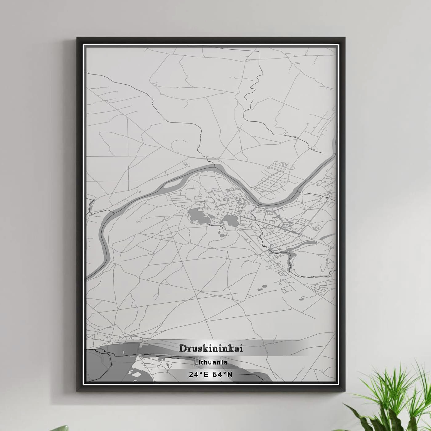 Enhance your space with the beauty of ROAD MAP OF DRUSKININKAI, LITHUANIA BY MAPBAKES, capturing both aesthetics and practicality in one extraordinary map print.