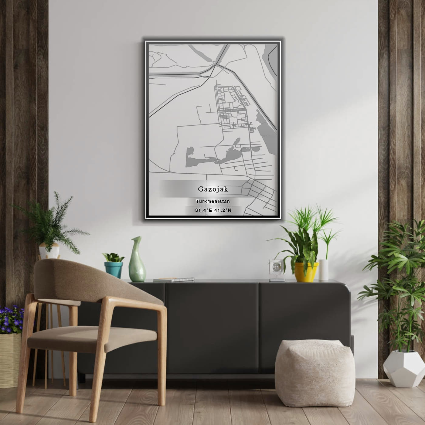 Enhance your space with the beauty of ROAD MAP OF GAZOJAK, TURKMENISTAN BY MAPBAKES, capturing both aesthetics and practicality in one extraordinary map print.