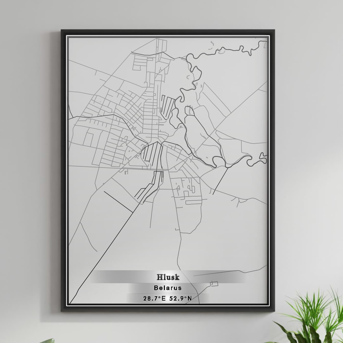 Enhance your space with the beauty of ROAD MAP OF HLUSK, BELARUS BY MAPBAKES, capturing both aesthetics and practicality in one extraordinary map print.