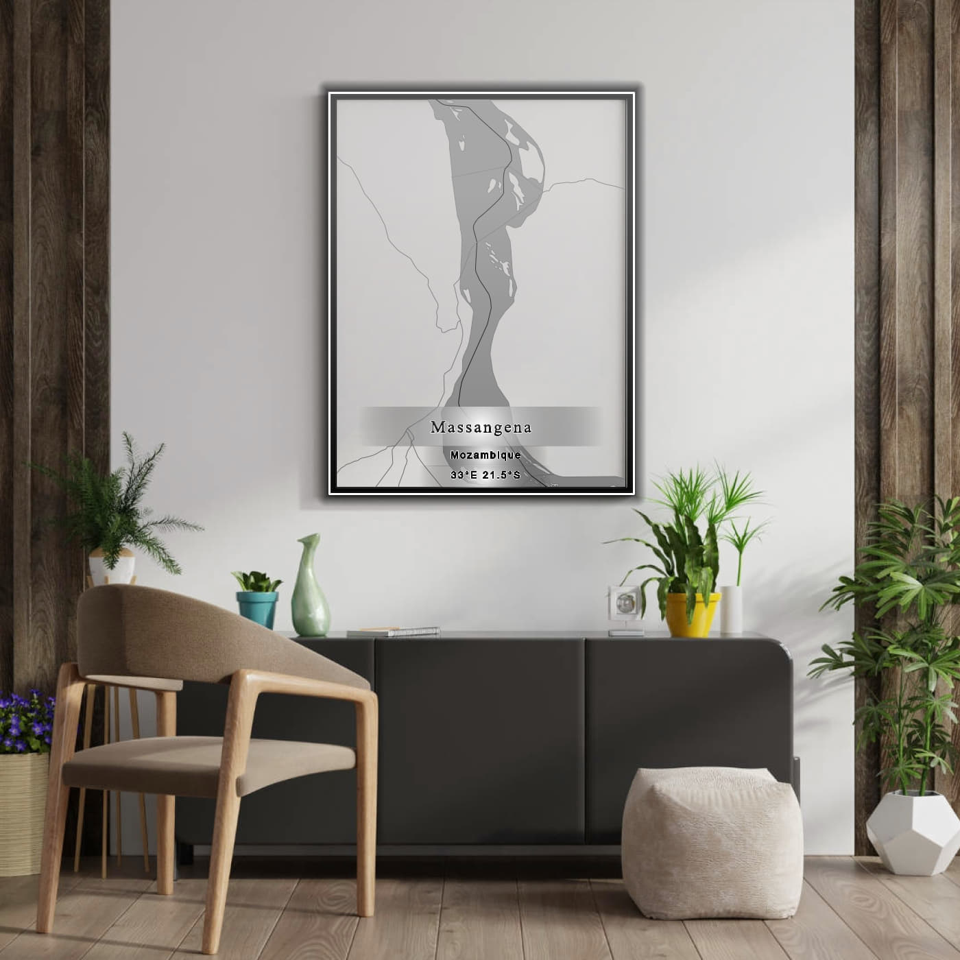 Enhance your space with the beauty of ROAD MAP OF MASSANGENA, MOZAMBIQUE BY MAPBAKES, capturing both aesthetics and practicality in one extraordinary map print.
