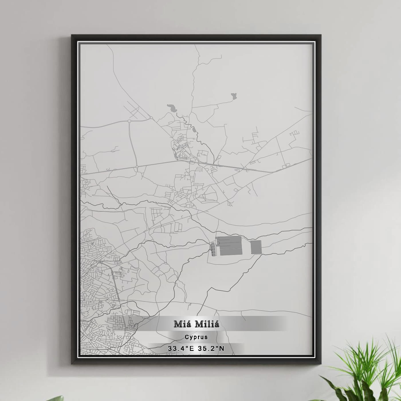 Enhance your space with the beauty of ROAD MAP OF MIÁ MILIÁ, CYPRUS BY MAPBAKES, capturing both aesthetics and practicality in one extraordinary map print.