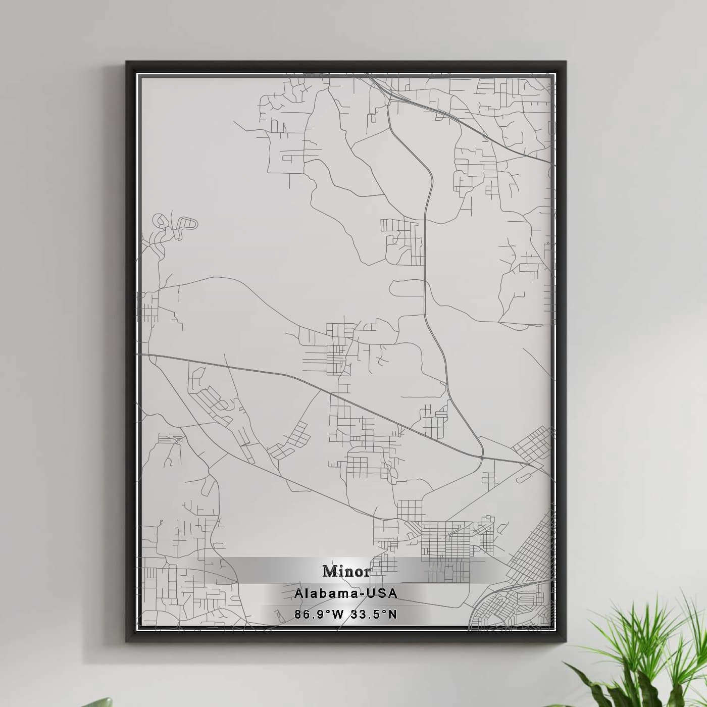 Enhance your space with the beauty of ROAD MAP OF MINOR, ALABAMA BY MAPBAKES, capturing both aesthetics and practicality in one extraordinary map print.