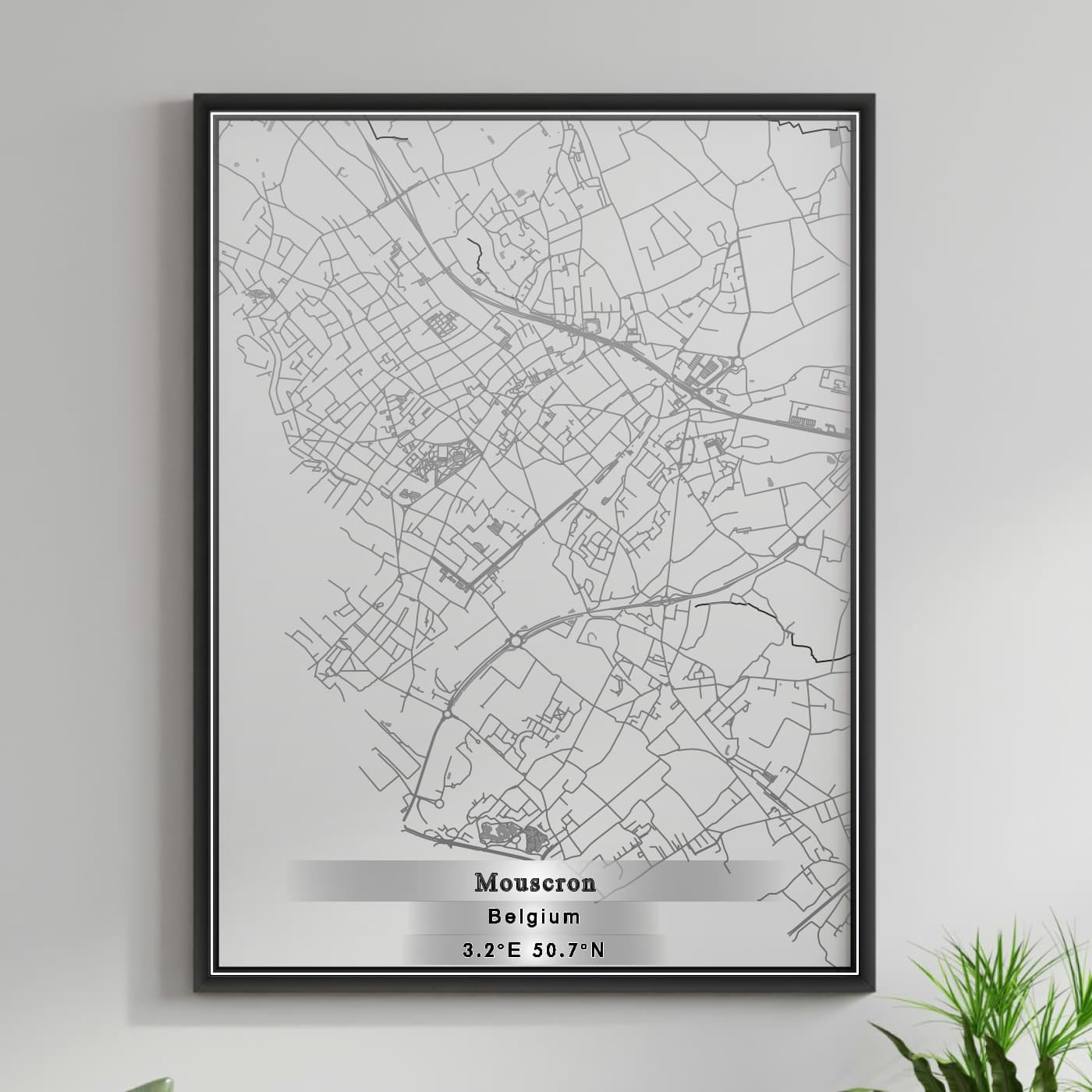 Enhance your space with the beauty of ROAD MAP OF MOUSCRON, BELGIUM BY MAPBAKES, capturing both aesthetics and practicality in one extraordinary map print.