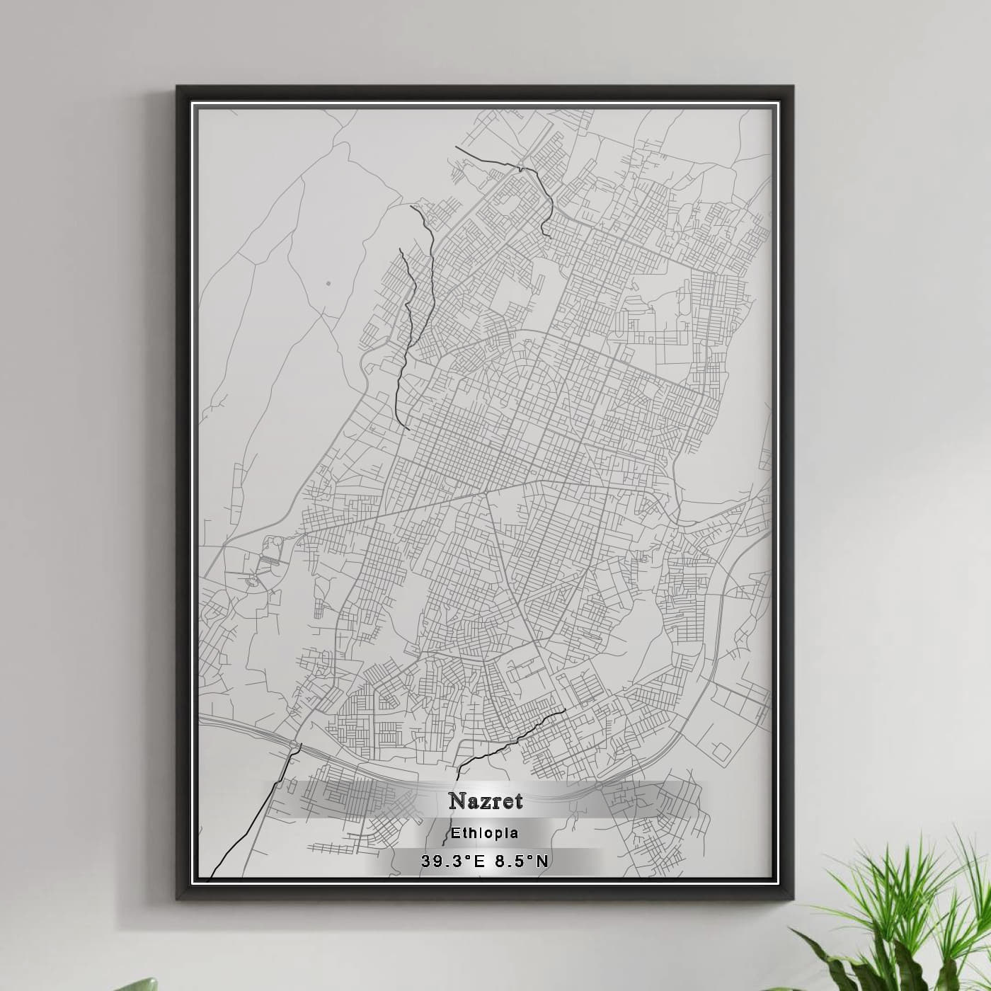Enhance your space with the beauty of ROAD MAP OF NAZRET, ETHIOPIA BY MAPBAKES, capturing both aesthetics and practicality in one extraordinary map print.