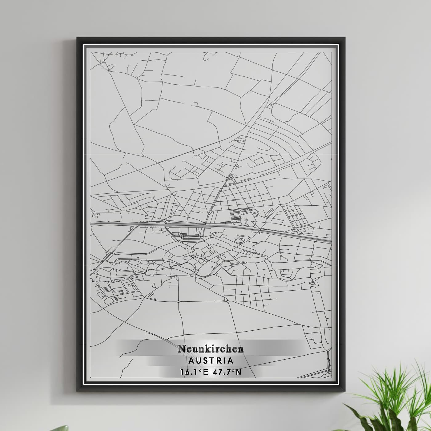 Enhance your space with the beauty of ROAD MAP OF NEUNKIRCHEN, AUSTRIA BY MAPBAKES, capturing both aesthetics and practicality in one extraordinary map print.