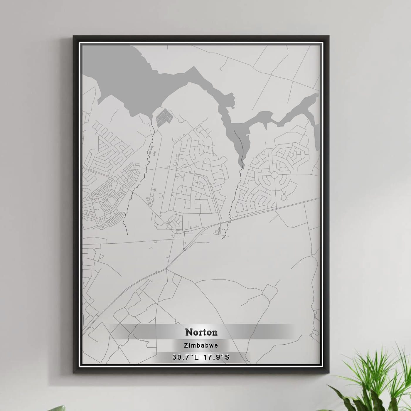 Enhance your space with the beauty of ROAD MAP OF NORTON, ZIMBABWE BY MAPBAKES, capturing both aesthetics and practicality in one extraordinary map print.