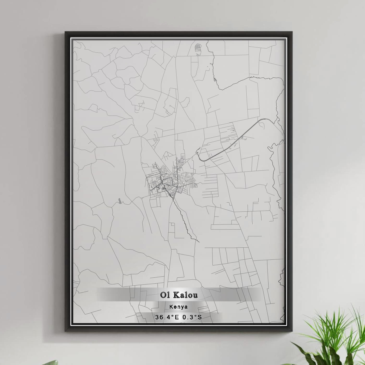 Enhance your space with the beauty of ROAD MAP OF OL KALOU, KENYA BY MAPBAKES, capturing both aesthetics and practicality in one extraordinary map print.