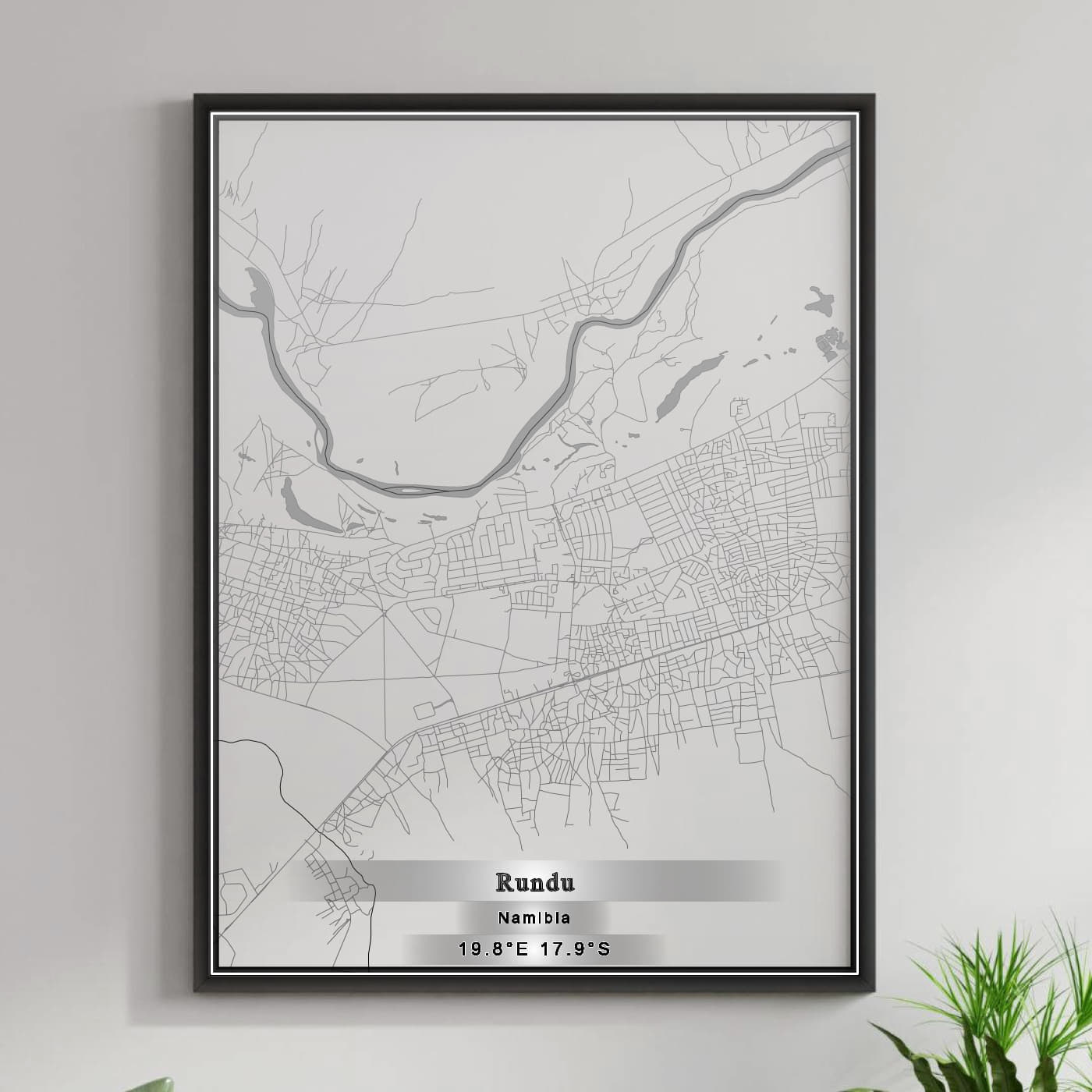 Enhance your space with the beauty of ROAD MAP OF RUNDU, NAMIBIA BY MAPBAKES, capturing both aesthetics and practicality in one extraordinary map print.