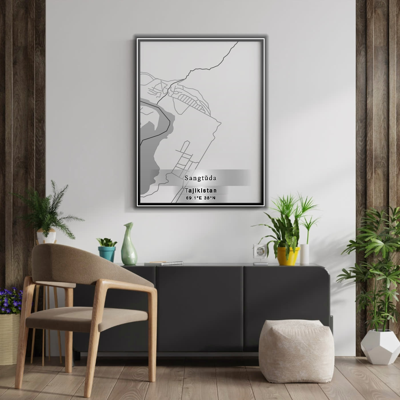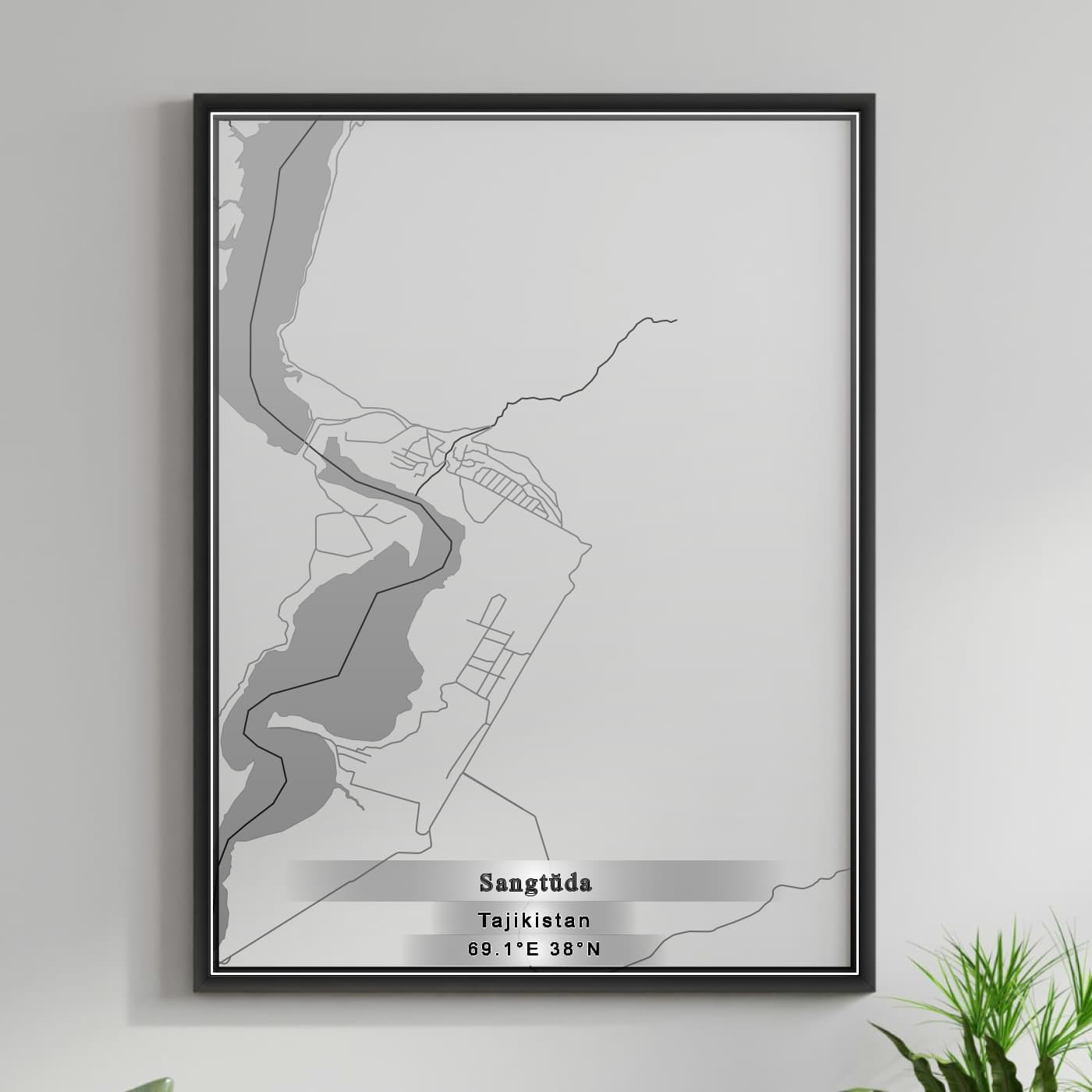 Enhance your space with the beauty of ROAD MAP OF SANGTUDA, TAJIKISTAN BY MAPBAKES, capturing both aesthetics and practicality in one extraordinary map print.