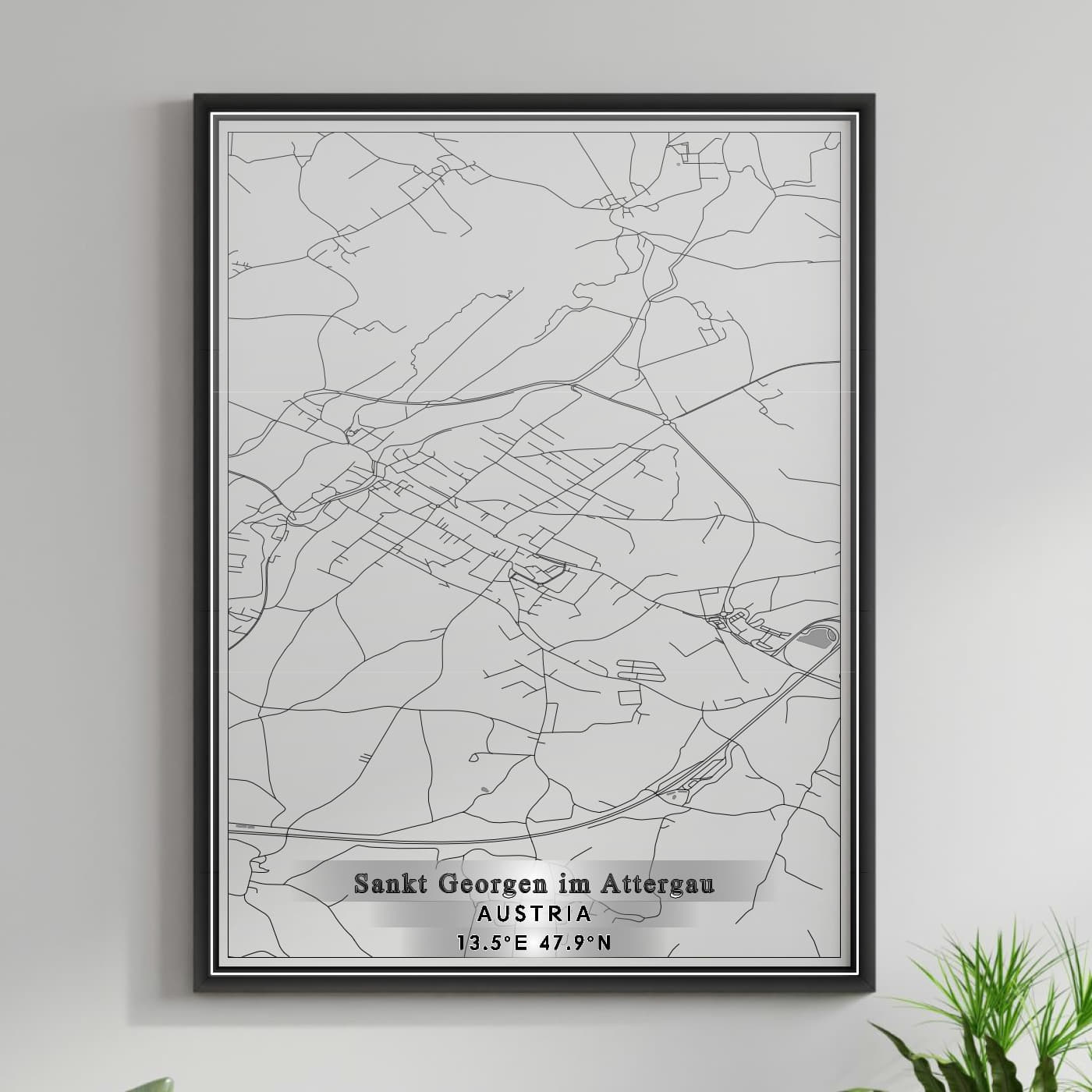 Enhance your space with the beauty of ROAD MAP OF SANKT GEORGEN IM ATTERGAU, AUSTRIA BY MAPBAKES, capturing both aesthetics and practicality in one extraordinary map print.