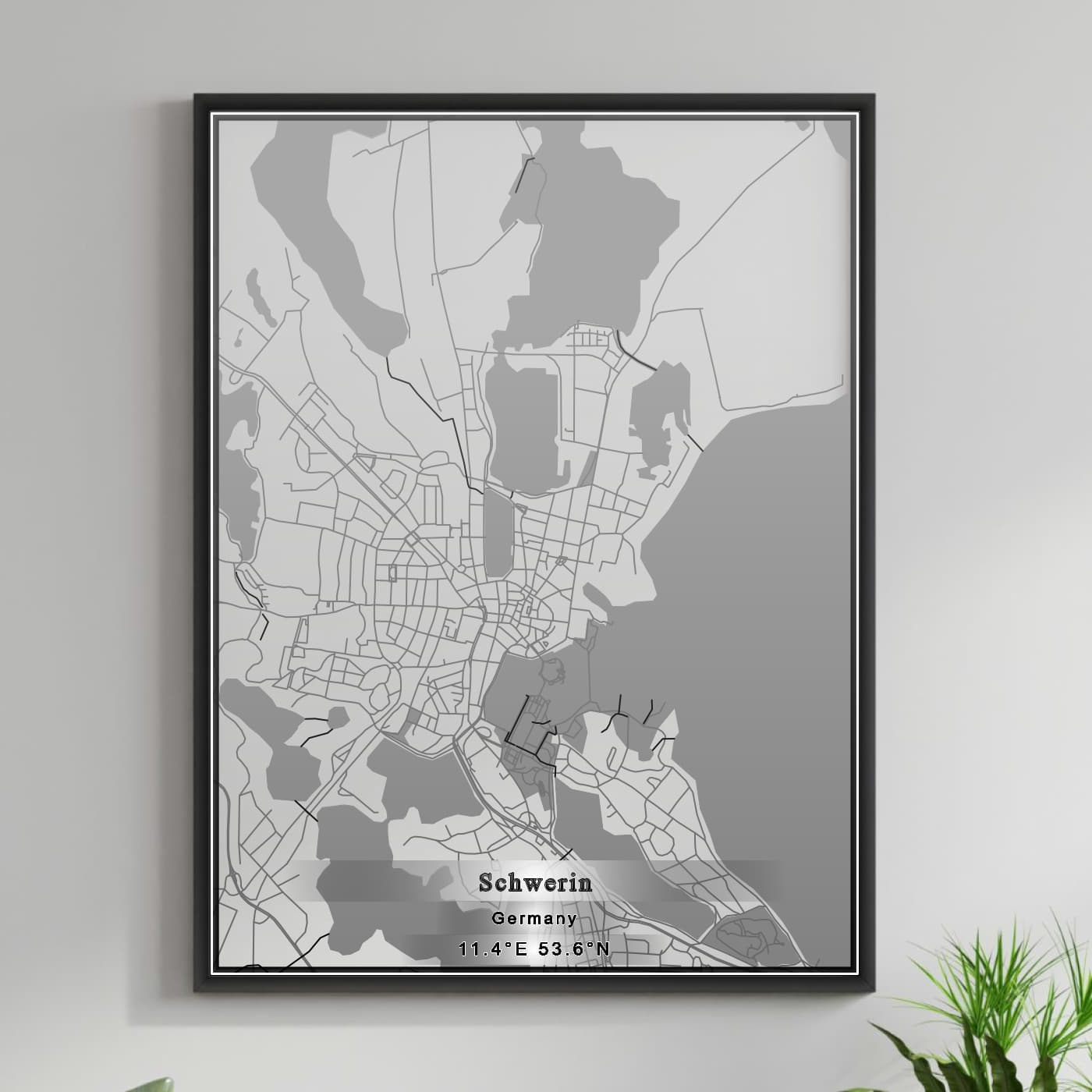 Enhance your space with the beauty of ROAD MAP OF SCHWERIN, GERMANY BY MAPBAKES, capturing both aesthetics and practicality in one extraordinary map print.