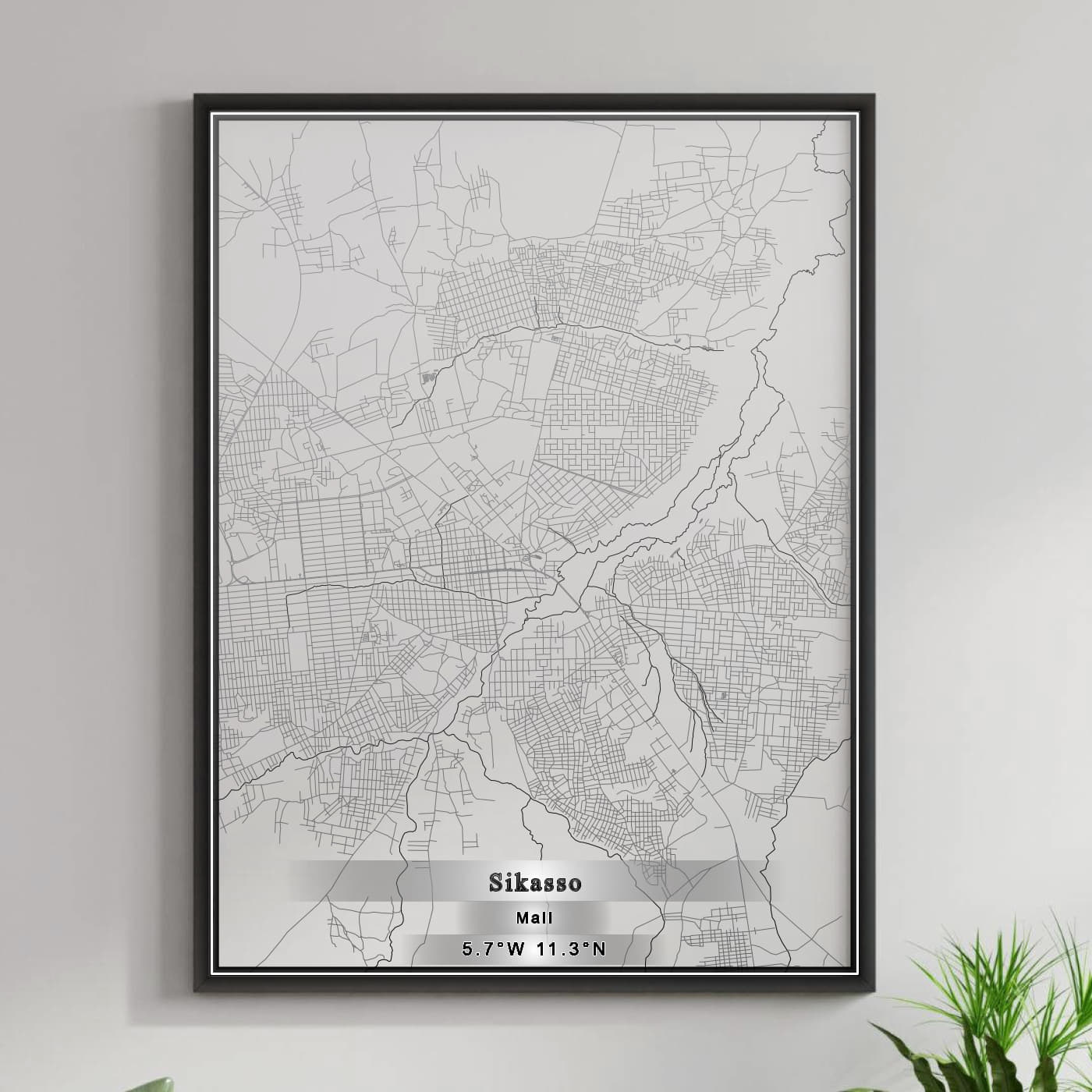 Enhance your space with the beauty of ROAD MAP OF SIKASSO, MALI BY MAPBAKES, capturing both aesthetics and practicality in one extraordinary map print.
