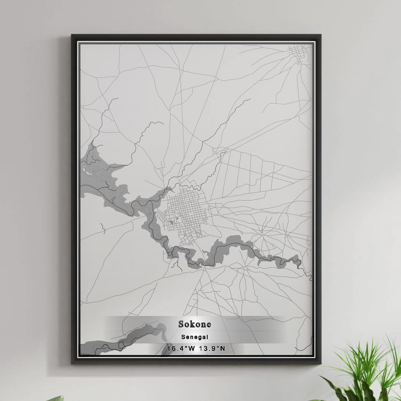 Enhance your space with the beauty of ROAD MAP OF SOKONE, SENEGAL BY MAPBAKES, capturing both aesthetics and practicality in one extraordinary map print.