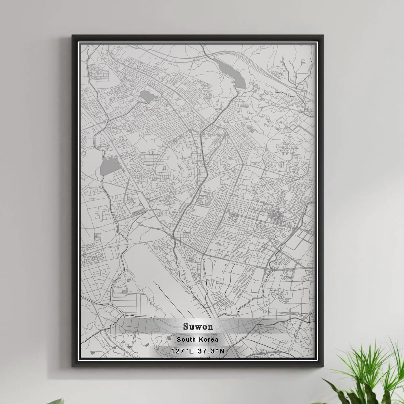 Enhance your space with the beauty of ROAD MAP OF SUWON, SOUTH KOREA BY MAPBAKES, capturing both aesthetics and practicality in one extraordinary map print.