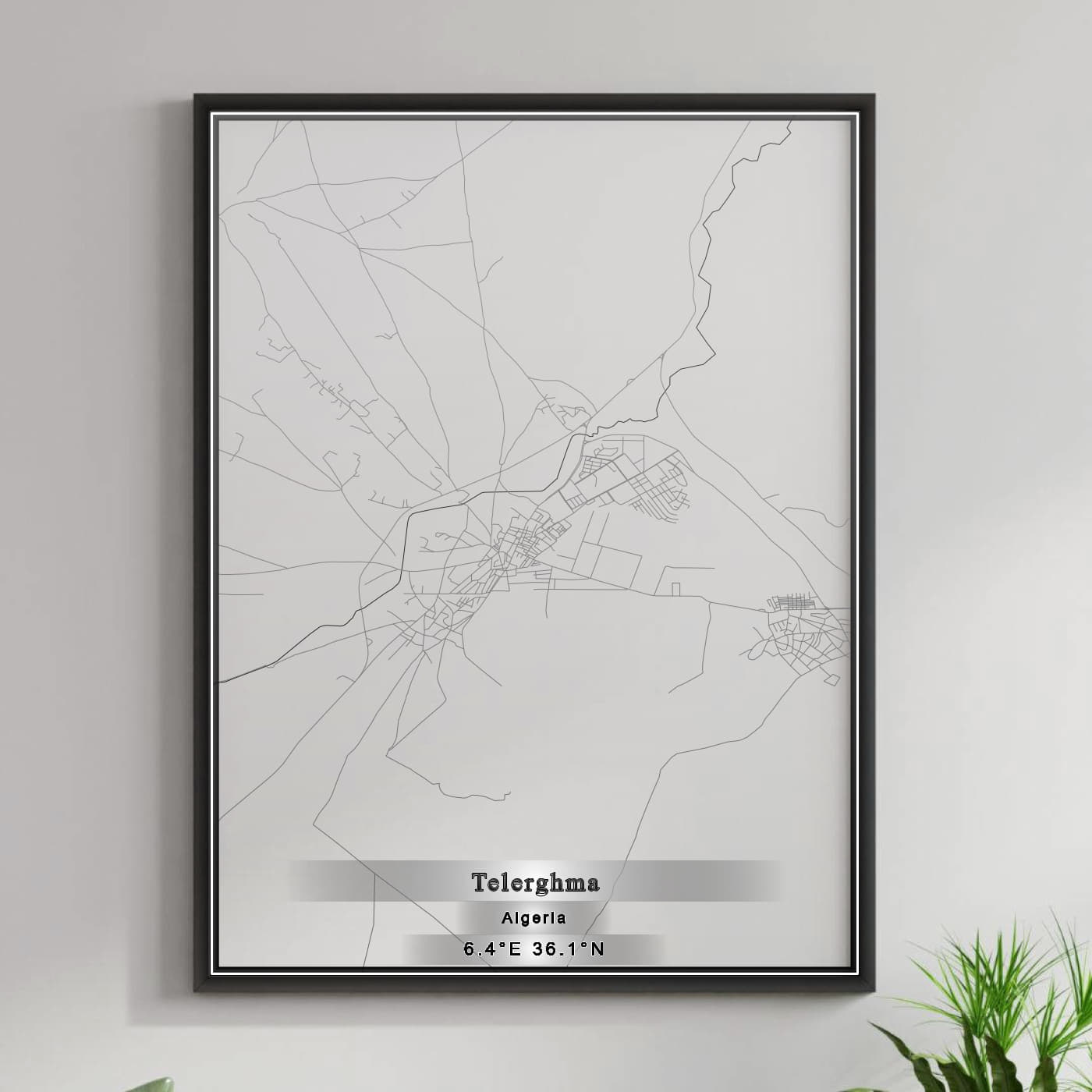Enhance your space with the beauty of ROAD MAP OF TELERGHMA, ALGERIA BY MAPBAKES, capturing both aesthetics and practicality in one extraordinary map print.