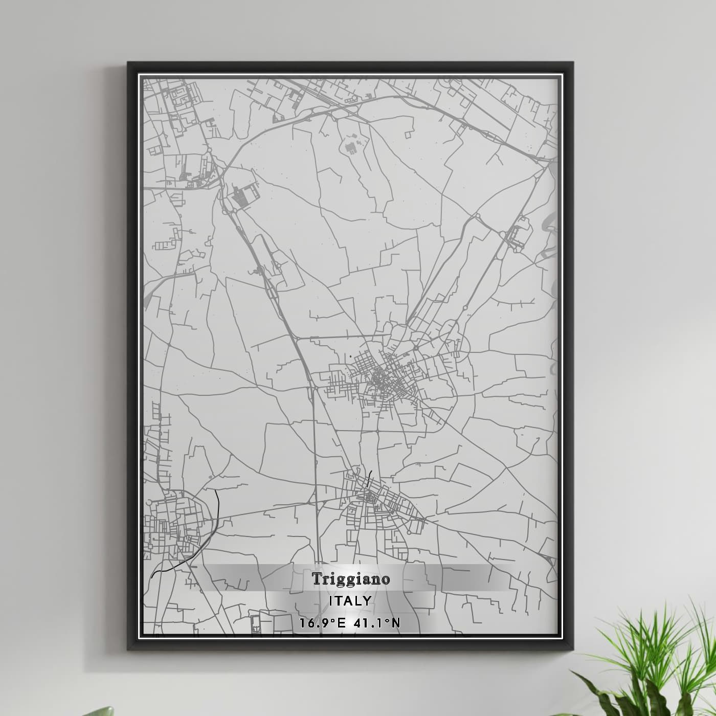 Enhance your space with the beauty of ROAD MAP OF TRIGGIANO, ITALY BY MAPBAKES, capturing both aesthetics and practicality in one extraordinary map print.