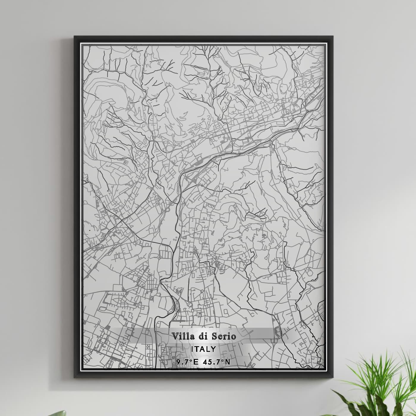 Enhance your space with the beauty of ROAD MAP OF VILLA DI SERIO, ITALY BY MAPBAKES, capturing both aesthetics and practicality in one extraordinary map print.