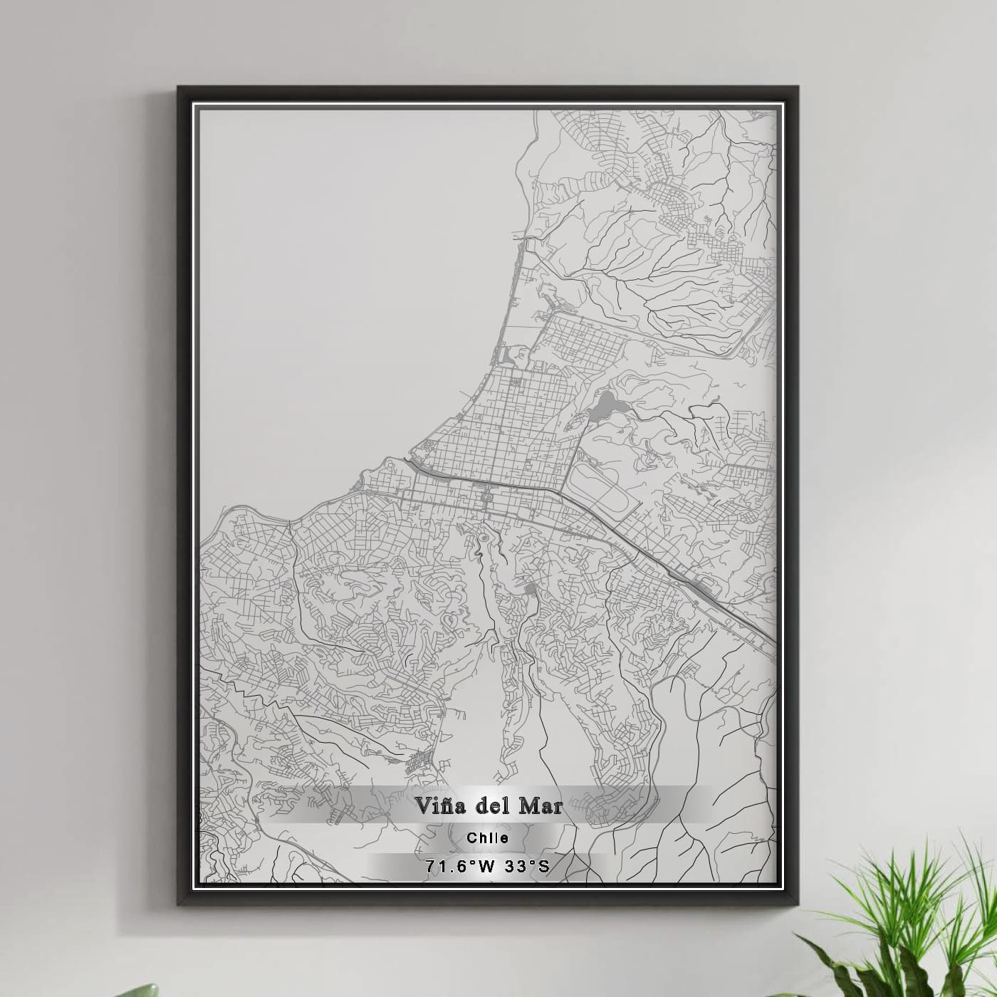 Enhance your space with the beauty of ROAD MAP OF VIÑA DEL MAR, CHILE BY MAPBAKES, capturing both aesthetics and practicality in one extraordinary map print.