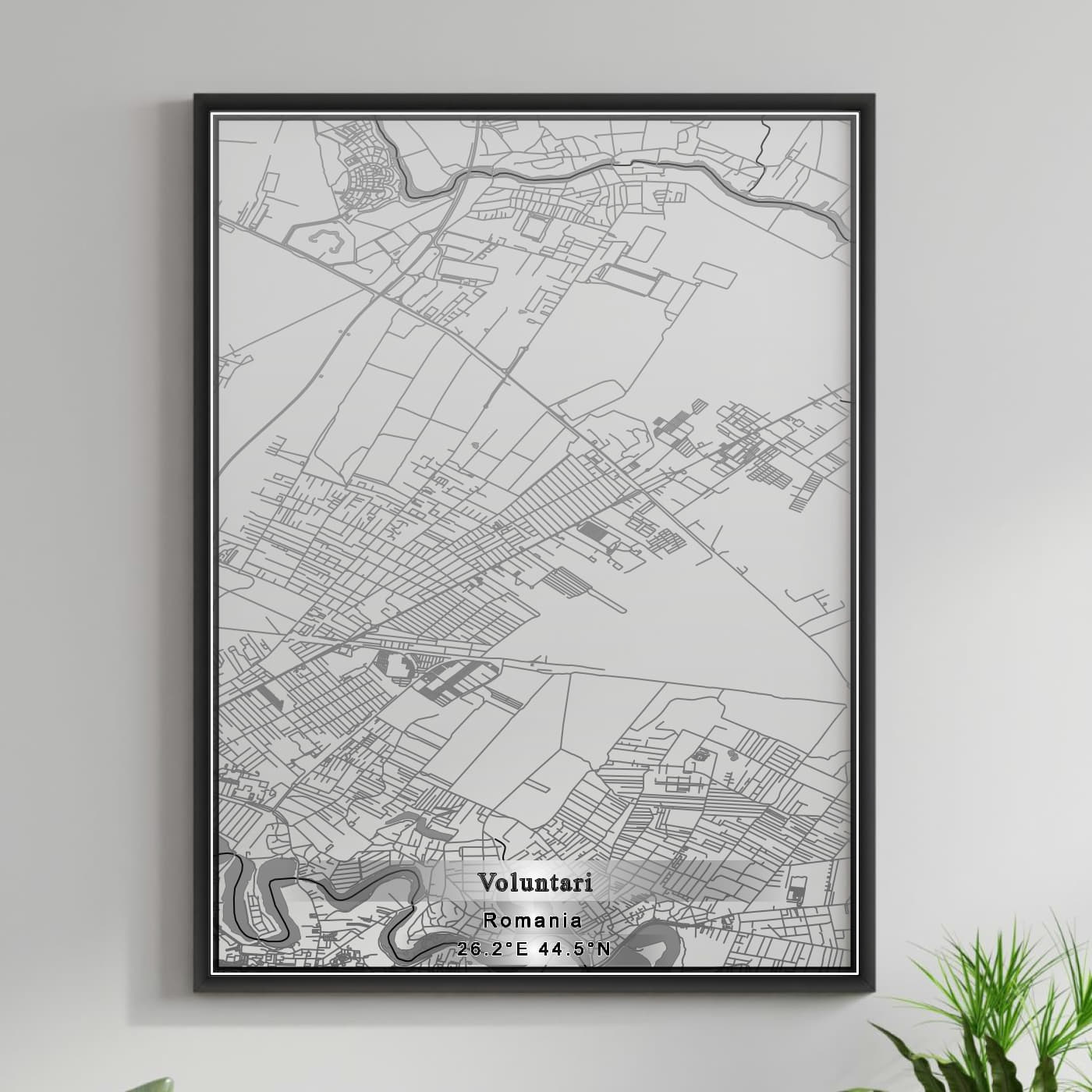 Enhance your space with the beauty of ROAD MAP OF VOLUNTARI, ROMANIA BY MAPBAKES, capturing both aesthetics and practicality in one extraordinary map print.