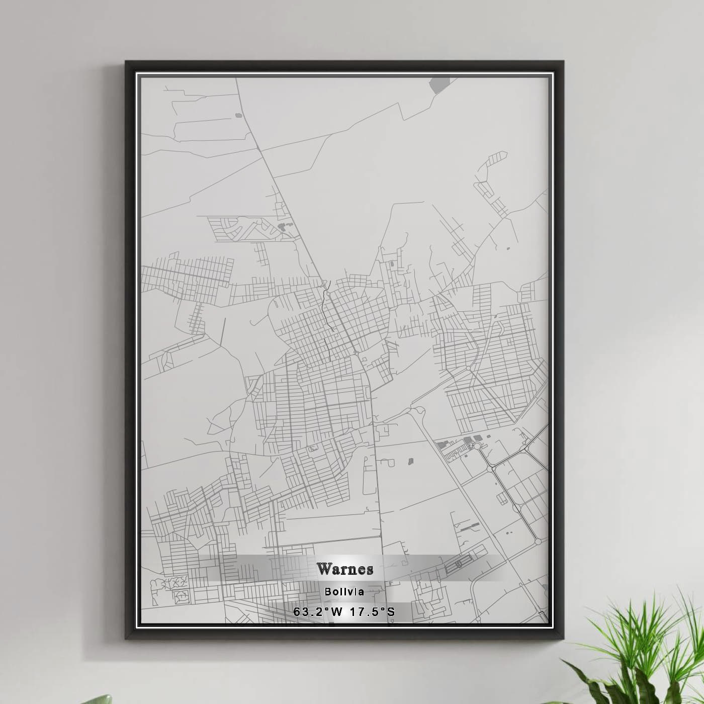 Enhance your space with the beauty of ROAD MAP OF WARNES, BOLIVIA BY MAPBAKES, capturing both aesthetics and practicality in one extraordinary map print.