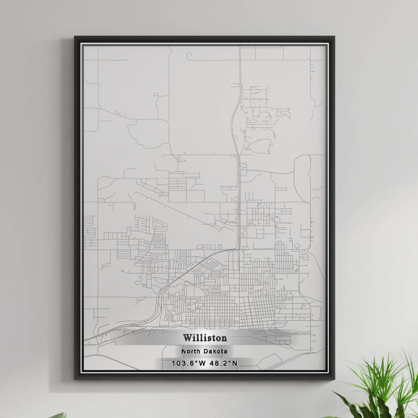 Enhance your space with the beauty of ROAD MAP OF WILLISTON, NORTH DAKOTA BY MAPBAKES, capturing both aesthetics and practicality in one extraordinary map print.