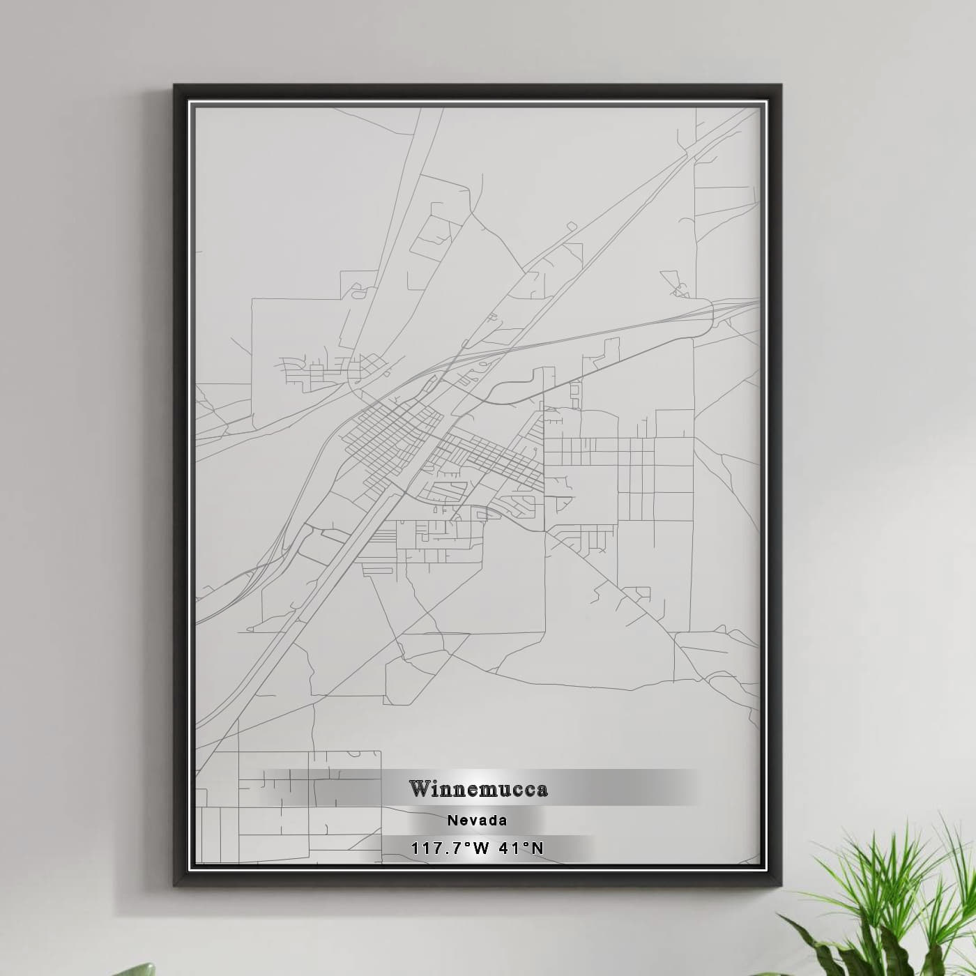 Enhance your space with the beauty of ROAD MAP OF WINNEMUCCA, NEVADA BY MAPBAKES, capturing both aesthetics and practicality in one extraordinary map print.
