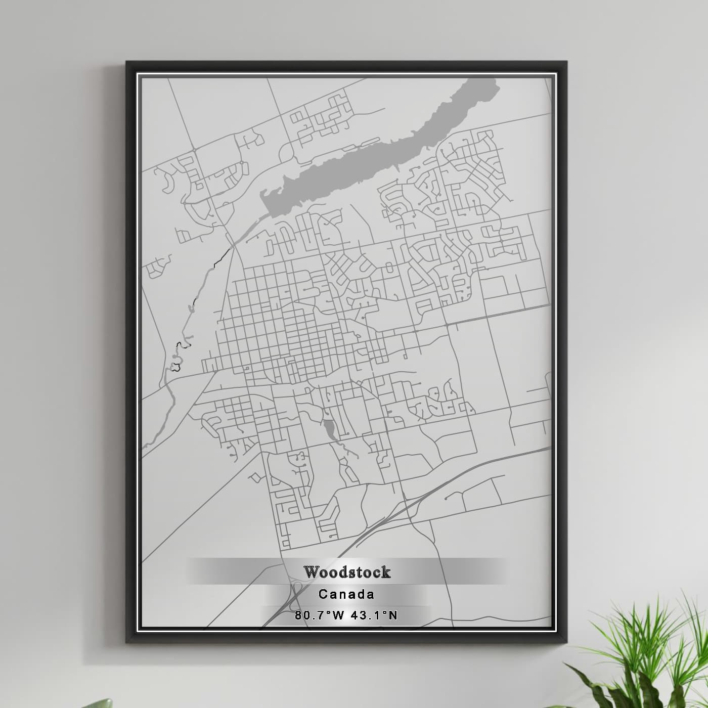 Enhance your space with the beauty of ROAD MAP OF WOODSTOCK, CANADA BY MAPBAKES, capturing both aesthetics and practicality in one extraordinary map print.