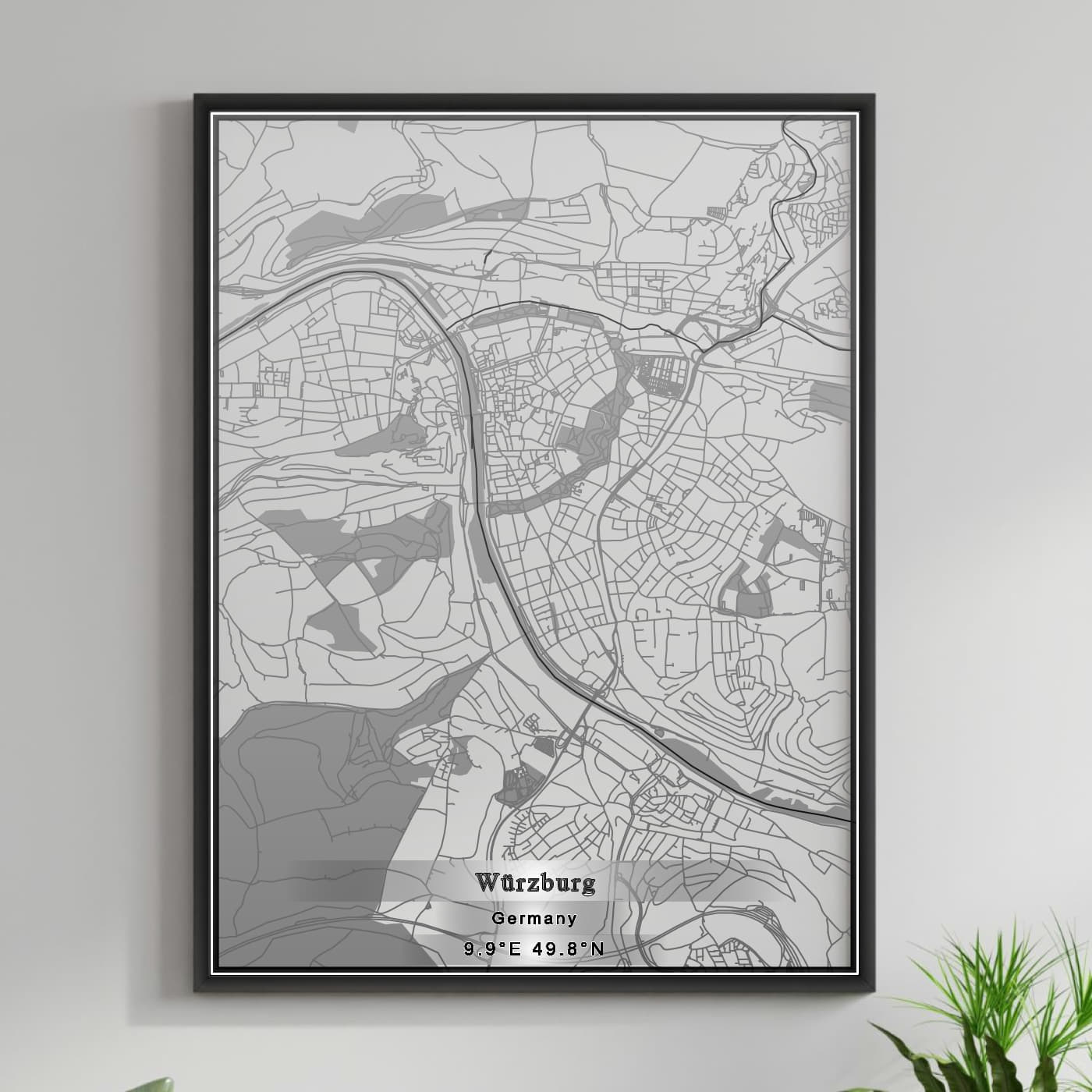 Enhance your space with the beauty of ROAD MAP OF WURZBURG, GERMANY BY MAPBAKES, capturing both aesthetics and practicality in one extraordinary map print.