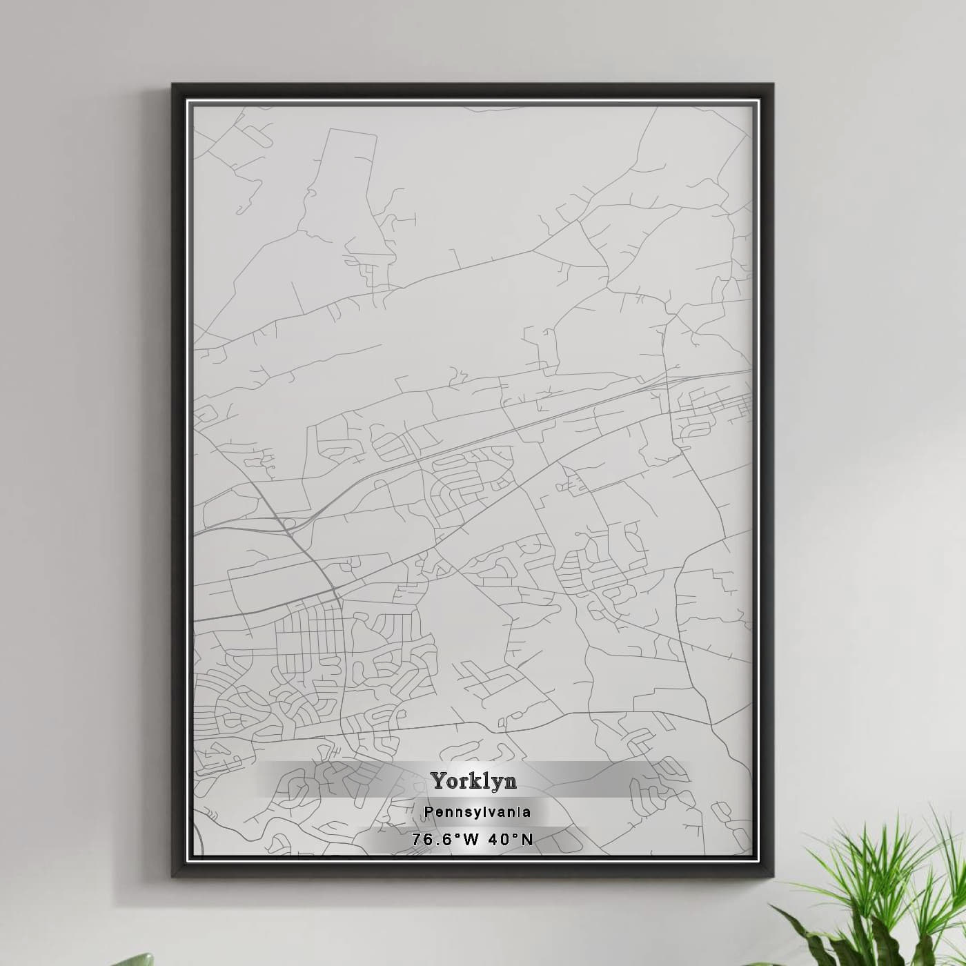 Enhance your space with the beauty of ROAD MAP OF YORKLYN, PENNSYLVANIA BY MAPBAKES, capturing both aesthetics and practicality in one extraordinary map print.