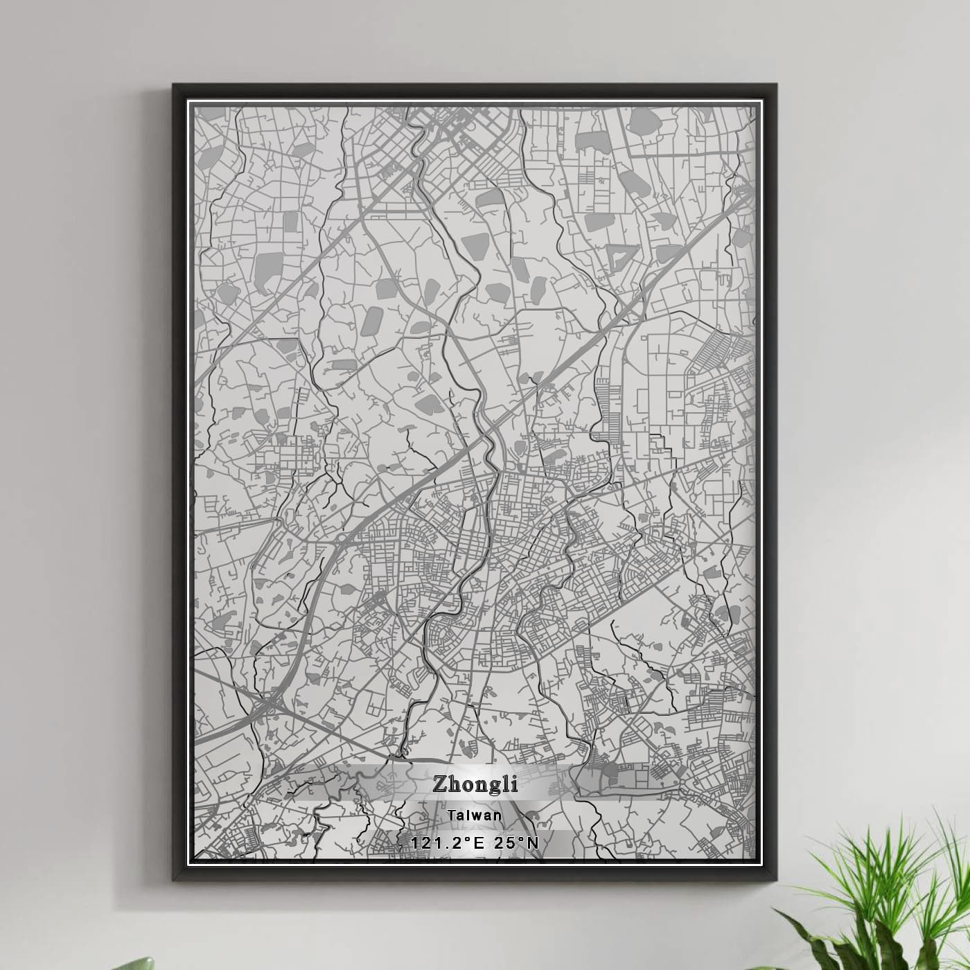 Enhance your space with the beauty of ROAD MAP OF ZHONGLI, TAIWAN BY MAPBAKES, capturing both aesthetics and practicality in one extraordinary map print.