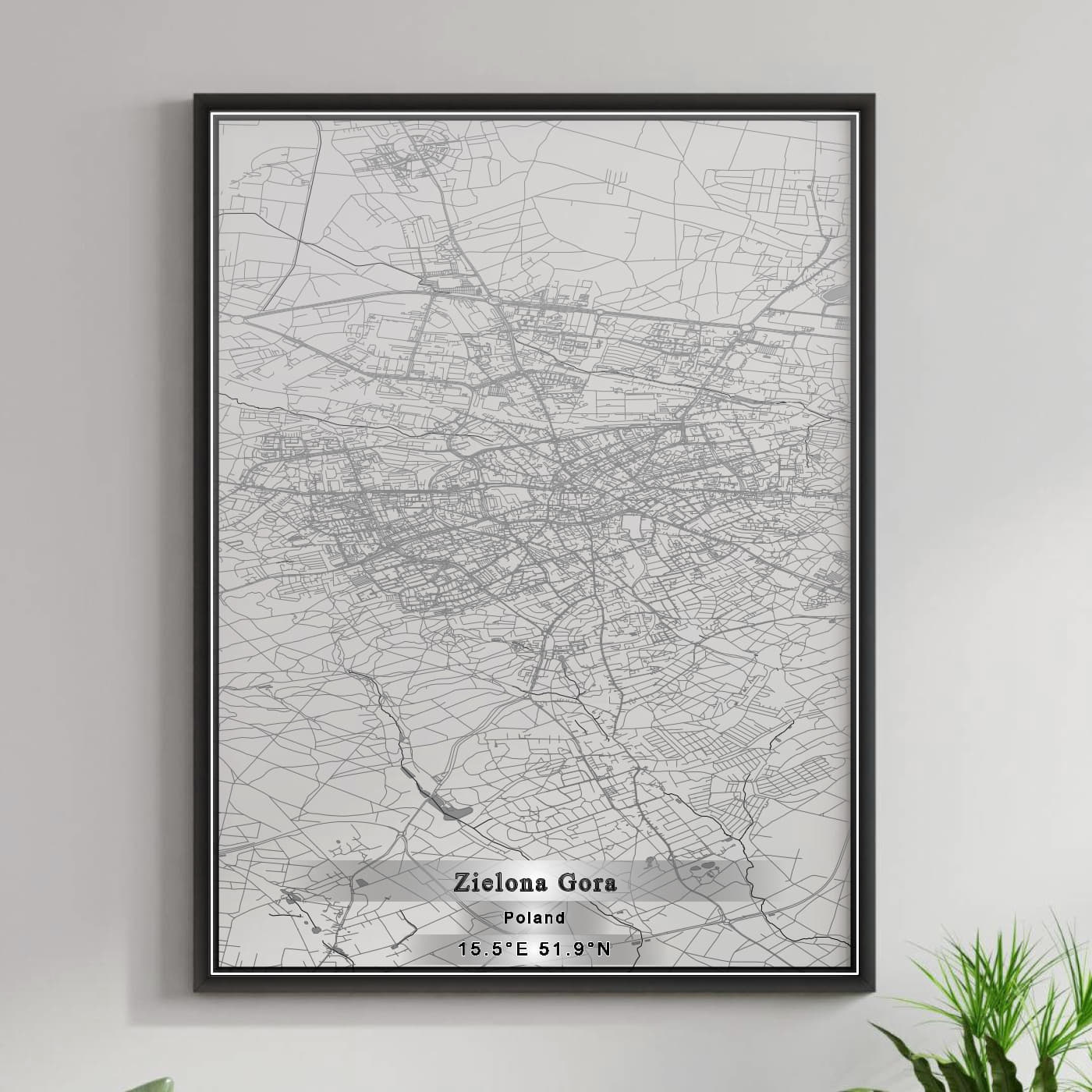 Enhance your space with the beauty of ROAD MAP OF ZIELONA GORA, POLAND BY MAPBAKES, capturing both aesthetics and practicality in one extraordinary map print.