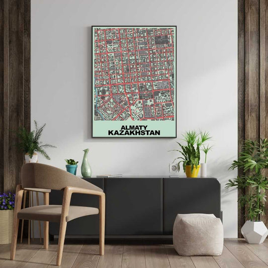 COLOURED ROAD MAP OF ALMATY, KAZAKHSTAN BY MAPBAKES
