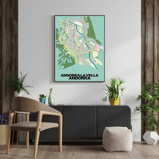 COLOURED ROAD MAP OF ANORRA LA VELLA, ANDORRA BY MAPBAKES