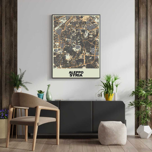 COLOURED ROAD MAP OF ALEPPO, SYRIA BY MAPBAKES
