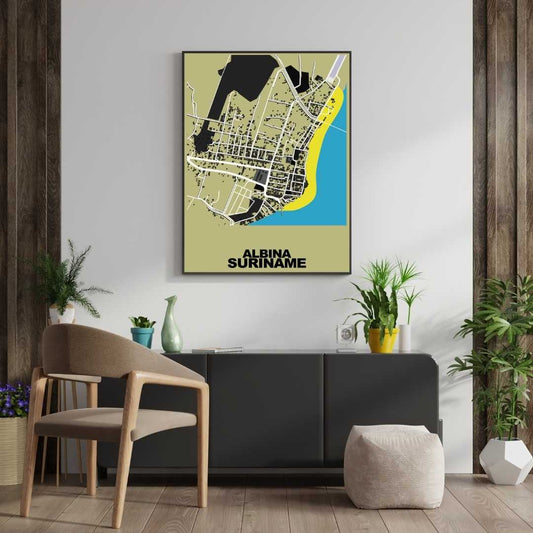 COLOURED ROAD MAP OF ALBINA, SURINAME BY MAPBAKES