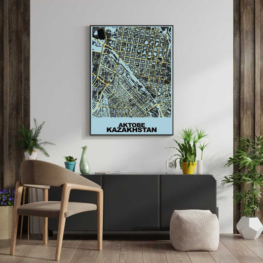 COLOURED ROAD MAP OF AKTOBE, KAZAKHSTAN BY MAPBAKES