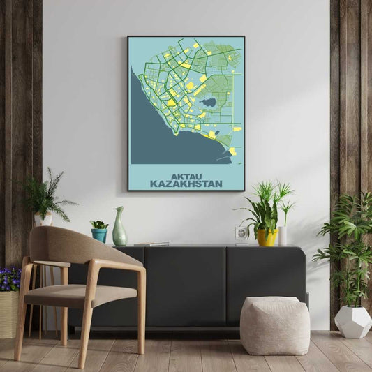 COLOURED ROAD MAP OF AKTAU, KAZAKHSTAN BY MAPBAKES